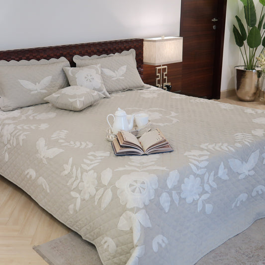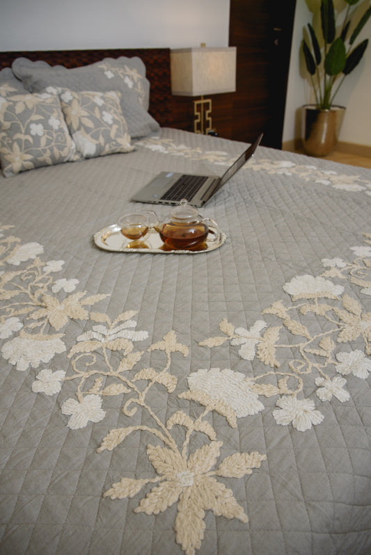 SUMMER BEDCOVER WITH WHITE RUNNER EMBROIDERY (SOFT GREY)