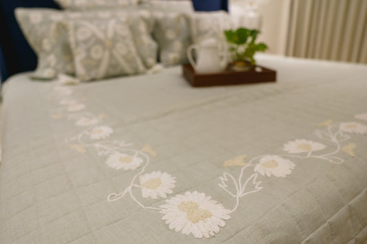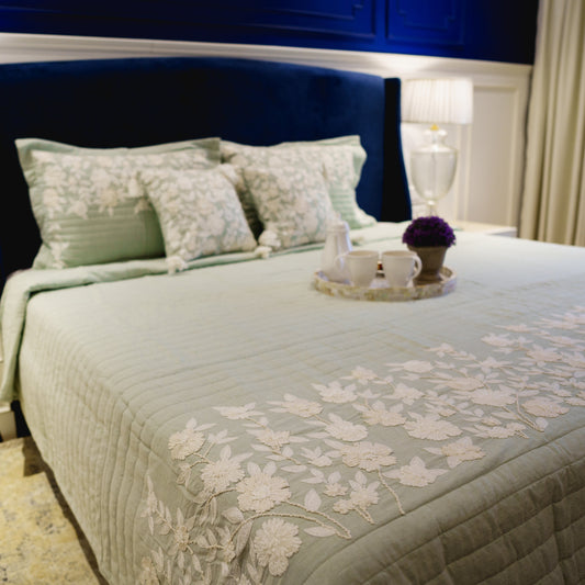 WINTER EMBROIDERED BED COVER (SEA GREEN)