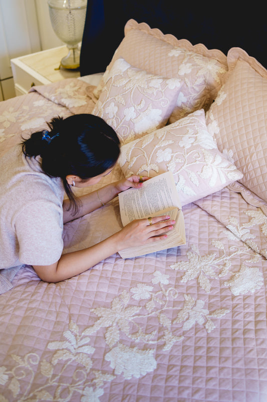 SPRING NATURAL BED COVER WITH WHITE EMBROIDERY