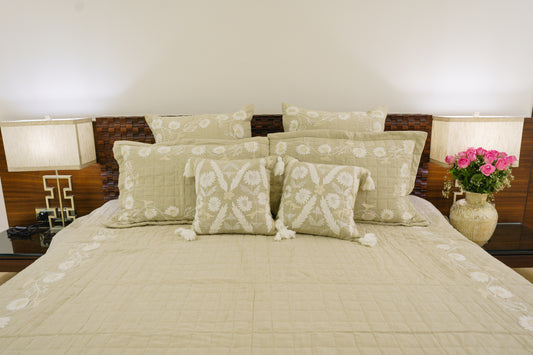 WINTER EMBROIDERED BED COVER (BEIGE)
