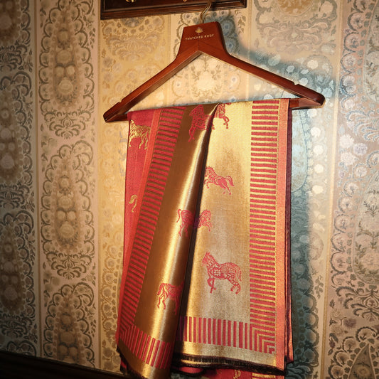RANI PINK HORSE ZARI REVERSIBLE SHAWL | WOOL