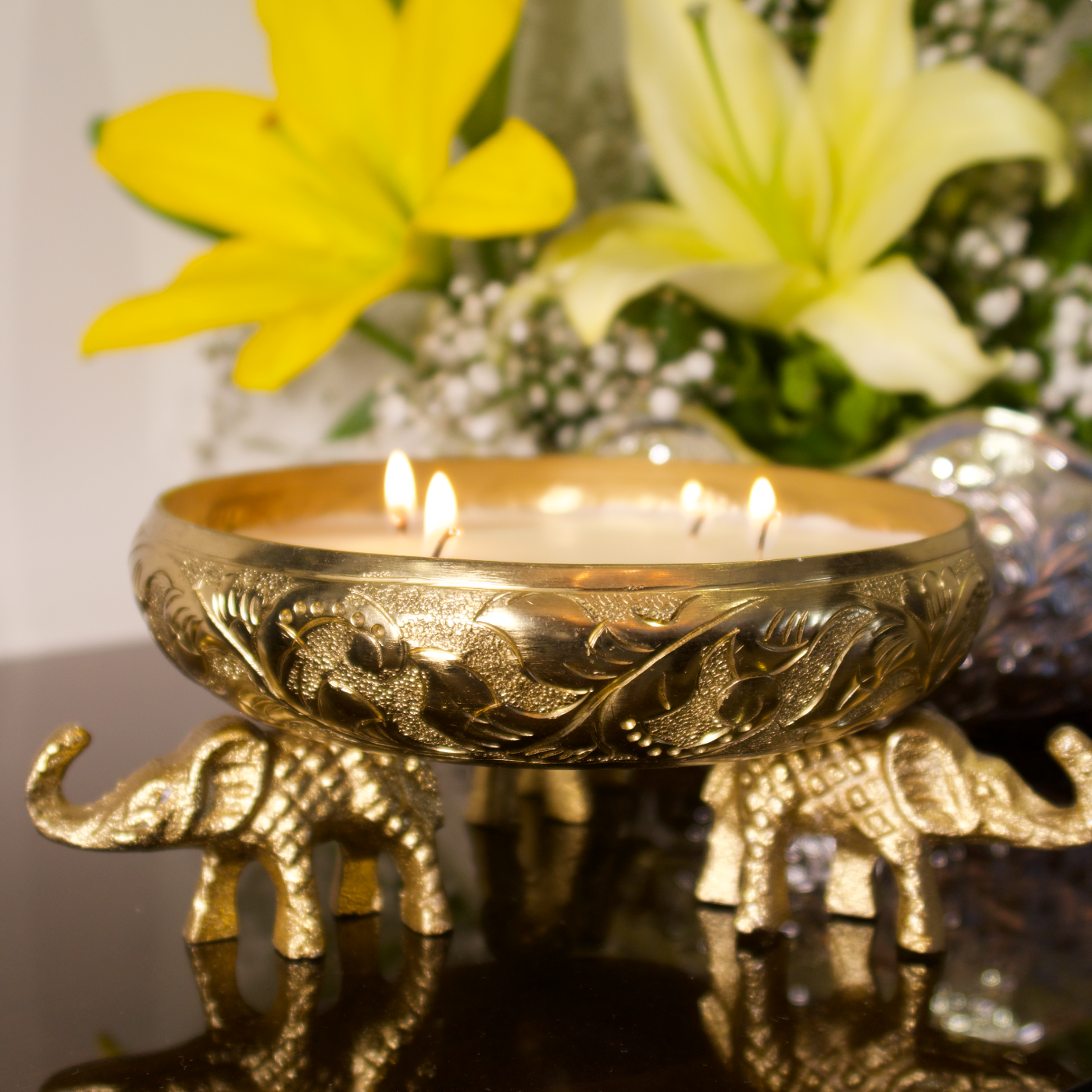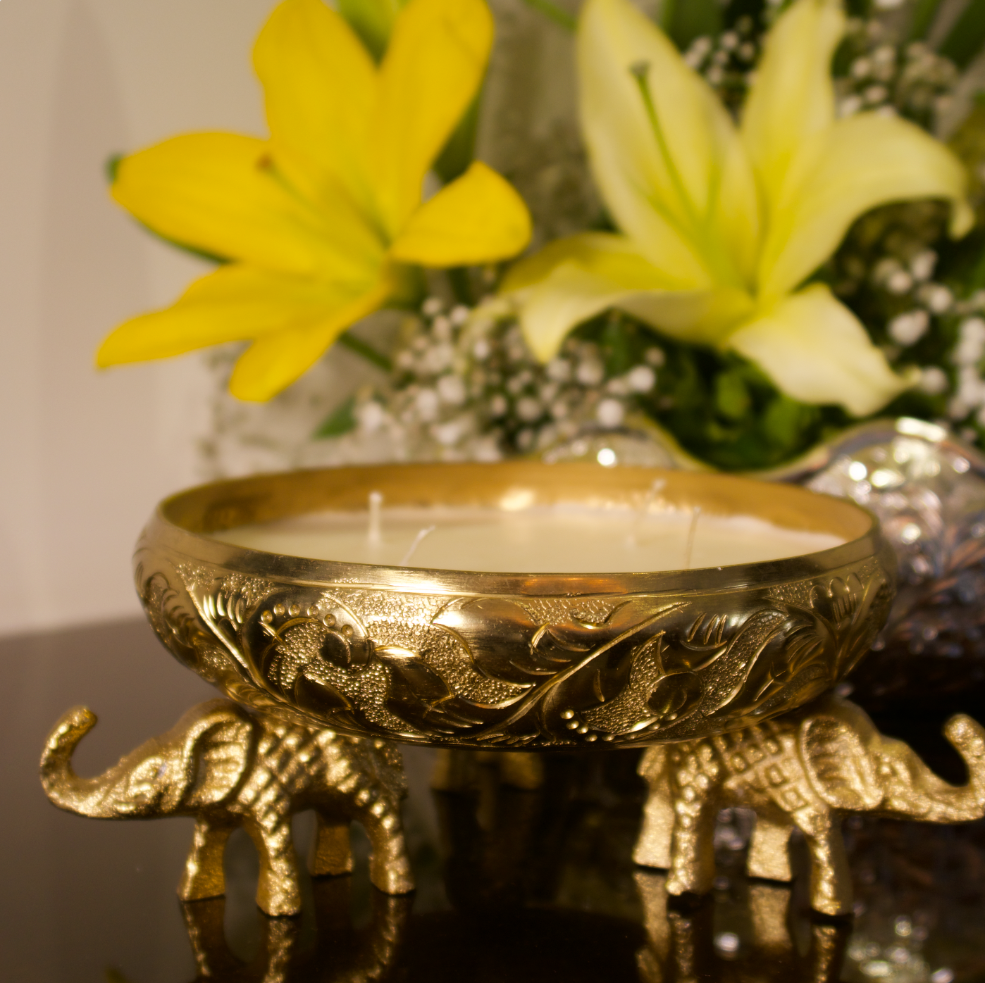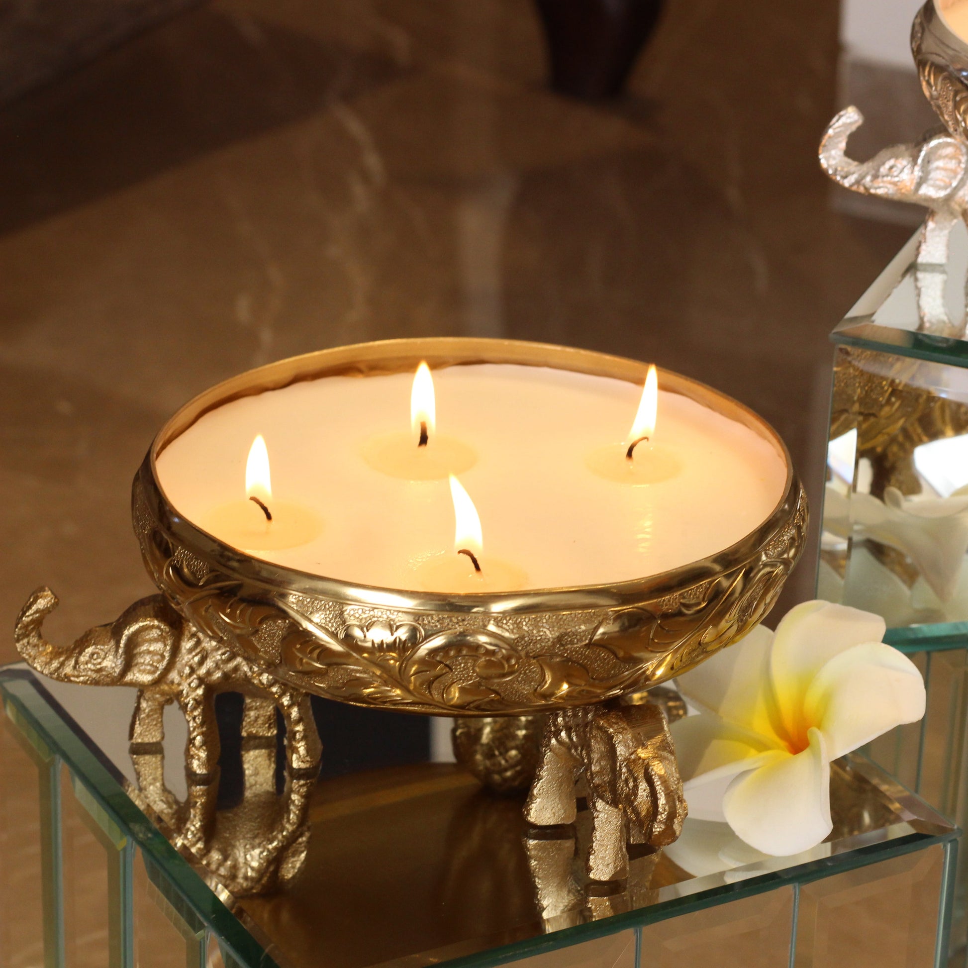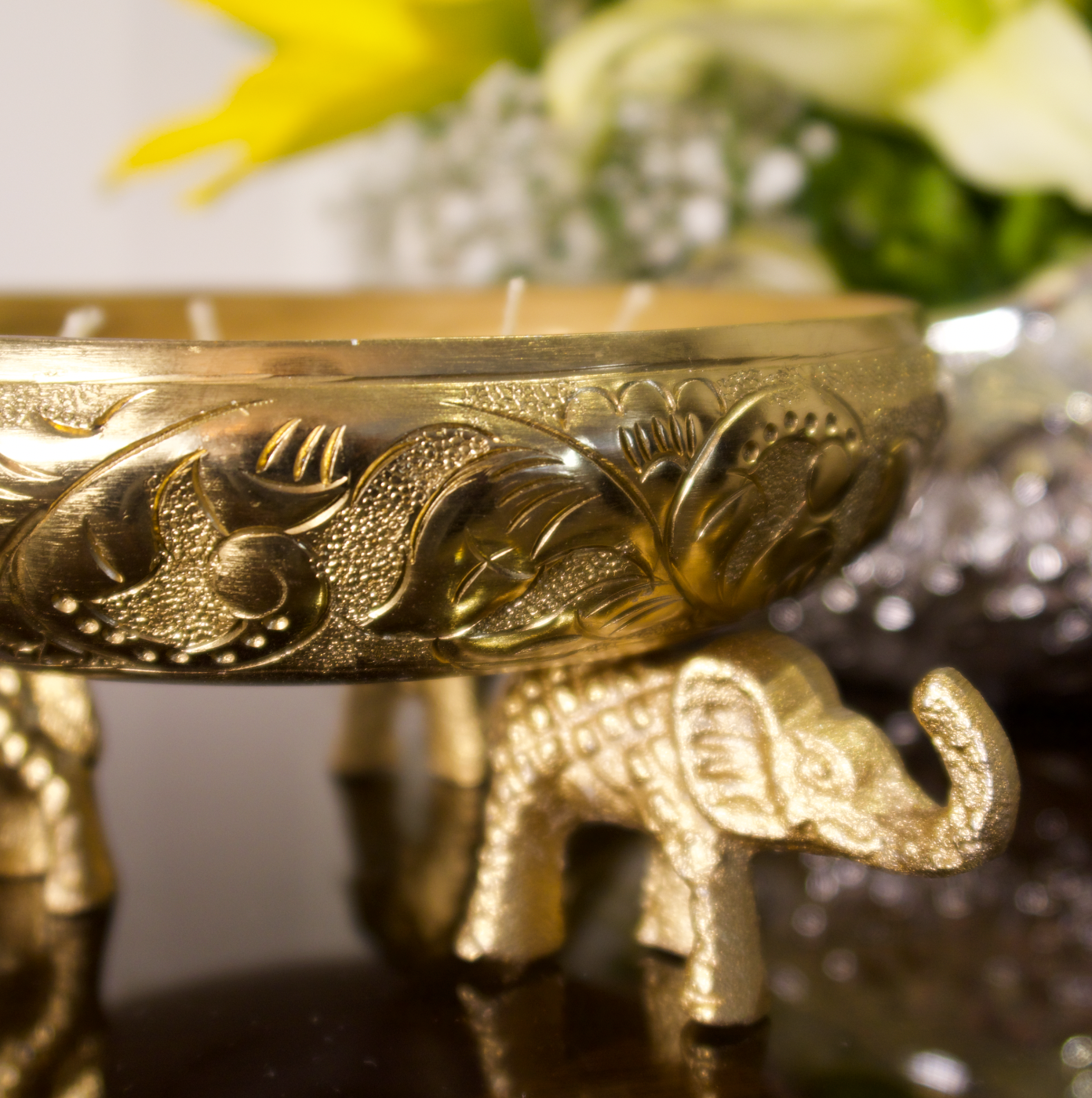 Making all your gold dreams come true! The Elephant Candle Urli in gold is exquisitely hand-carved and embossed, featuring intricately designed elephant legs that bring a unique and playful touch. This elegant piece enhances any space with Indian heritage and a sense of grandeur!
