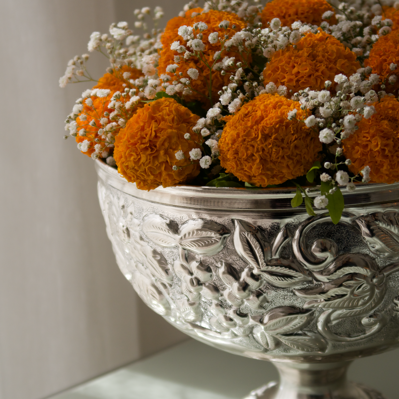 The Nargis Silver Vase is all things elegant and eye-catching. With its gorgeous Chitai work and raised relief work, it brings just the right amount of texture and old-school charm to your space. Lacquered for that lasting shine, it brings all the right vibes, no effort needed.